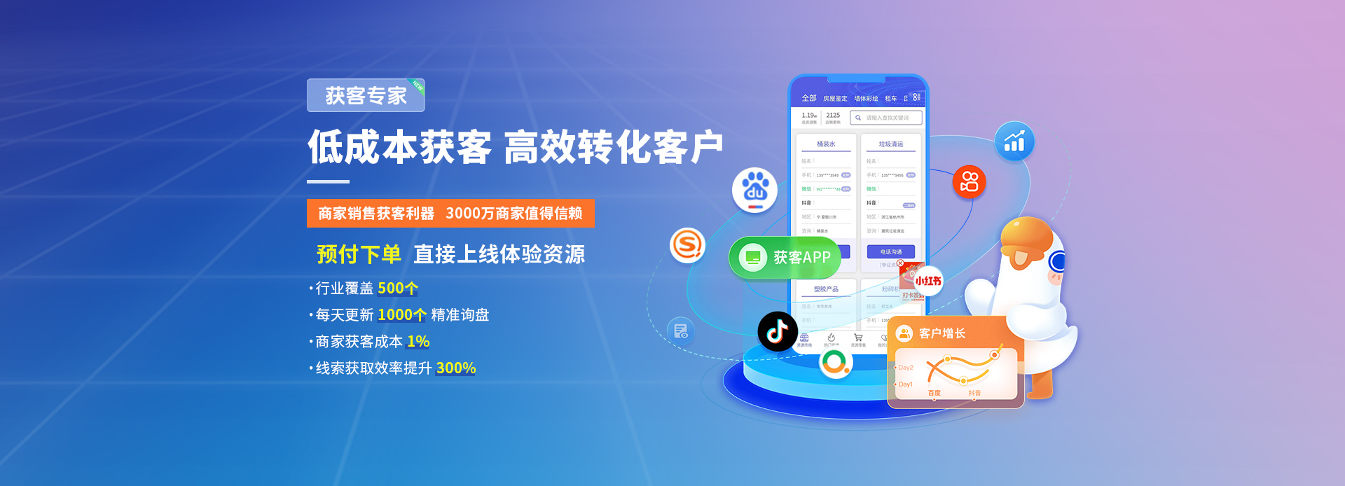 为了将产品信息以丰富多彩的样式展现给有需求的客户,从而有效地为销售产品拓展客户,因此创立了专业获客团队。公司将尊崇“务实拼搏、创新高效”的企业精神,并以诚信、其赢的合作经营理念,以“完善的管理,全新的技术,优质的服务,卓越的品质”为生存根本,创造良好的产品销售服务平台。